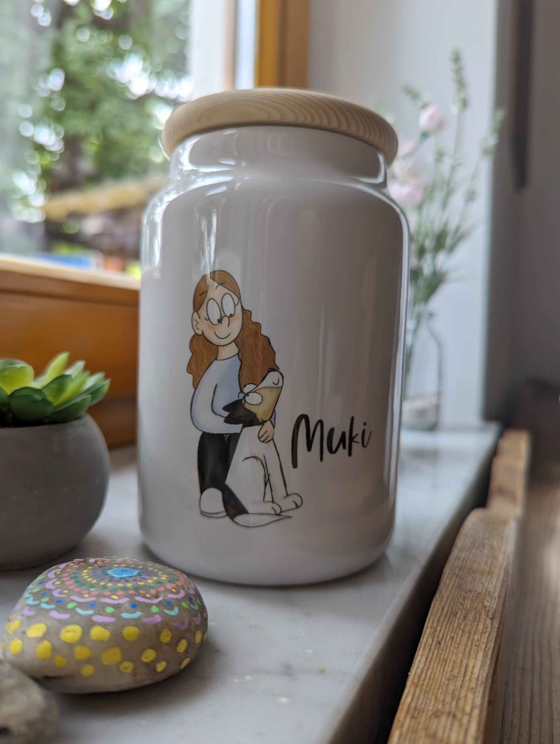 Diese stilvolle Keramikdose ist perfekt für die Aufbewahrung von kleinen Utensilien oder allerlei Leckereien für Deinen Vierbeiner. Mit ihrem eleganten Design und der Möglichkeit zur Personalisierung wird sie zum echten Hingucker in Deinem Zuhause.